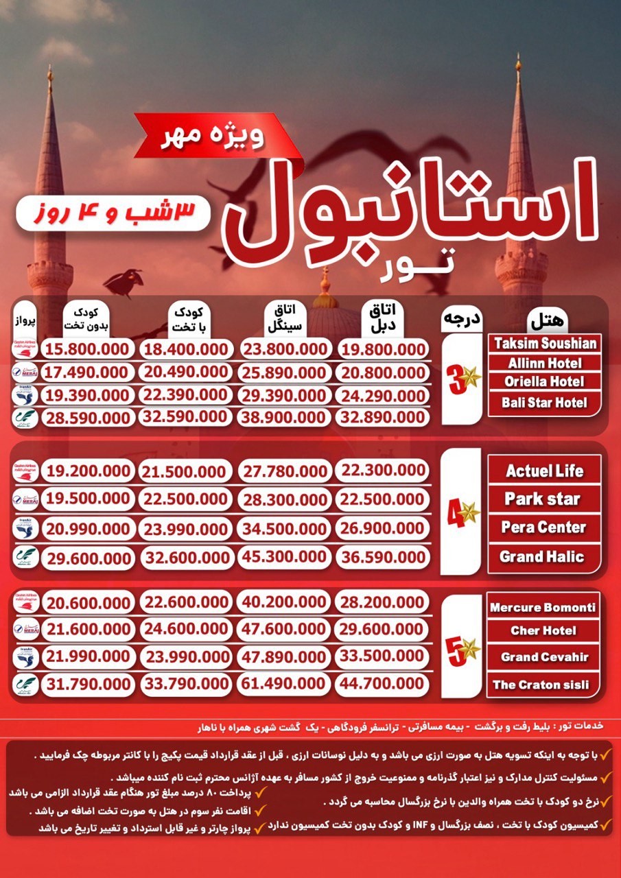 مشاورهقیمت پکیج تورتقویم تورجزییات پروازخدمات تور